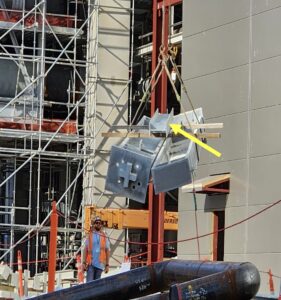NOTE: Steel I-Beam is not secured/rigged, it is resting on the wood.
